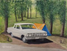 Camping in Wyoming in 1969 with our 1962 Chevy BelAir on the way to Yellowstone National Park. (Pen & Watercolour)