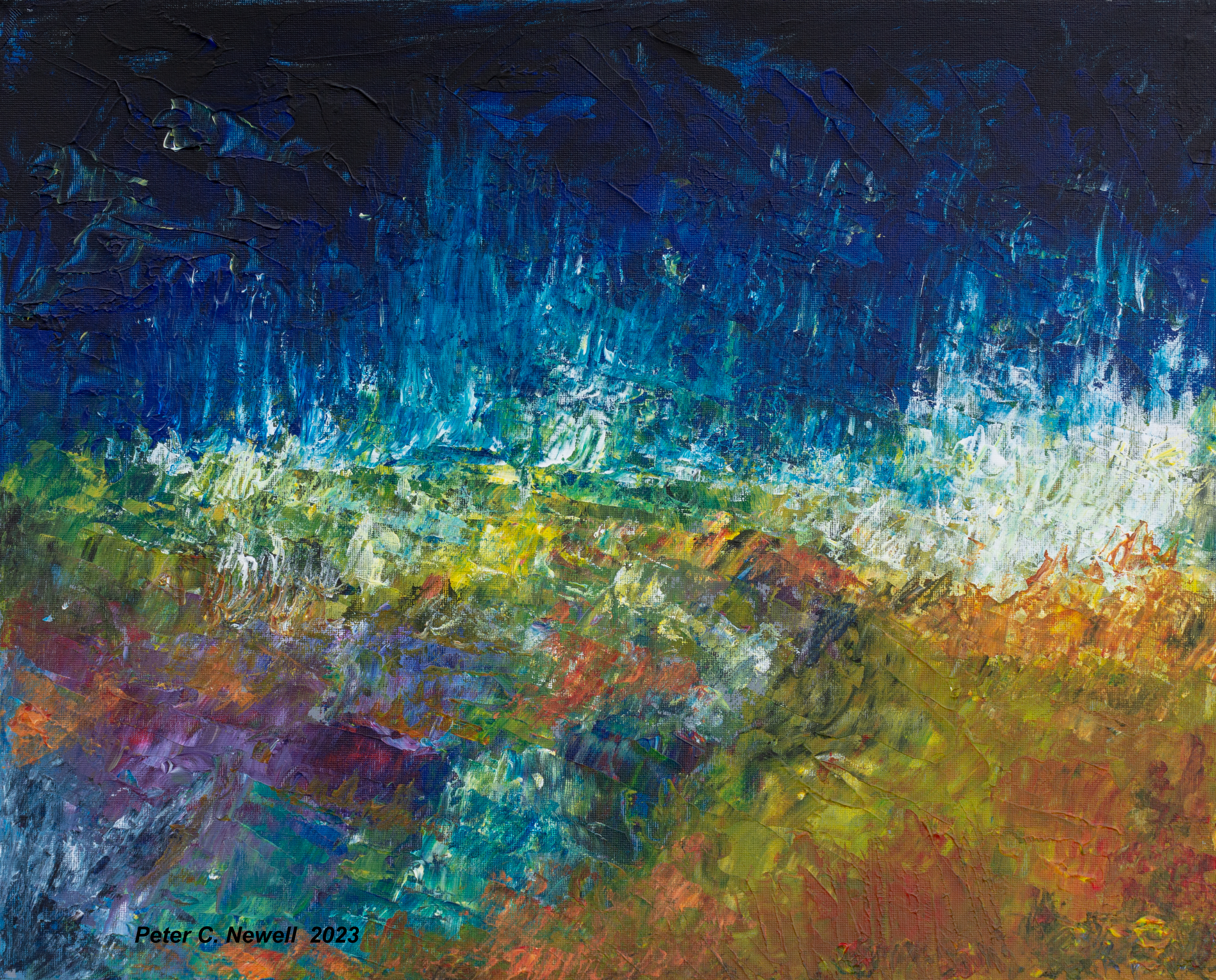 Distant view of city lights at night (Acrylics abstract using a palette knife, 2023)