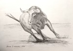 “End of the Road” Pen & CMYK Watercolour sketch drawn from imagination and memories of driving in the hot deserts of Arizona, Nevada and Utah in August 1969.