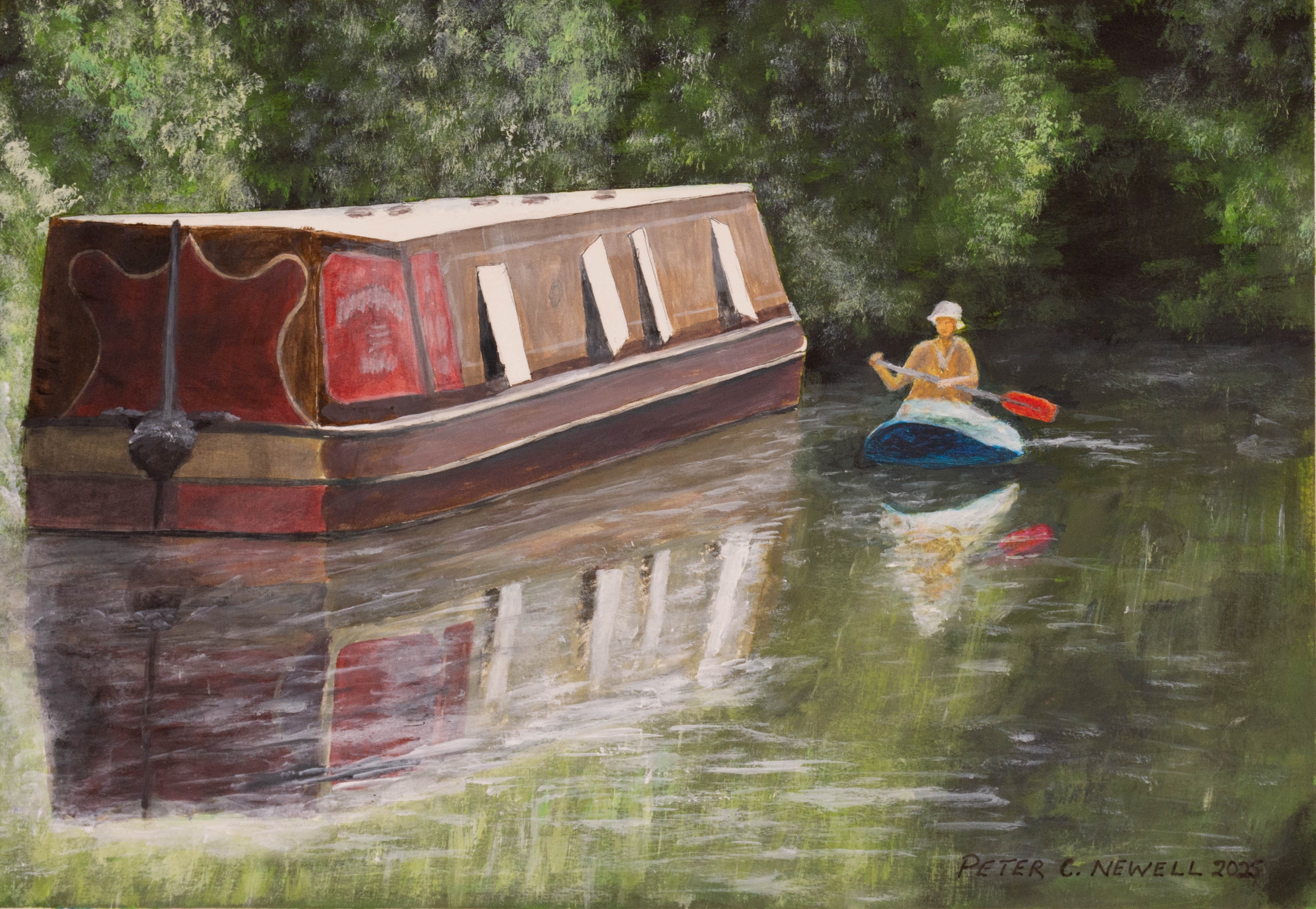 A canoeist approaches an old barge near Farnborough, UK (Acrylics on 410 x 310mm paper ) 2025