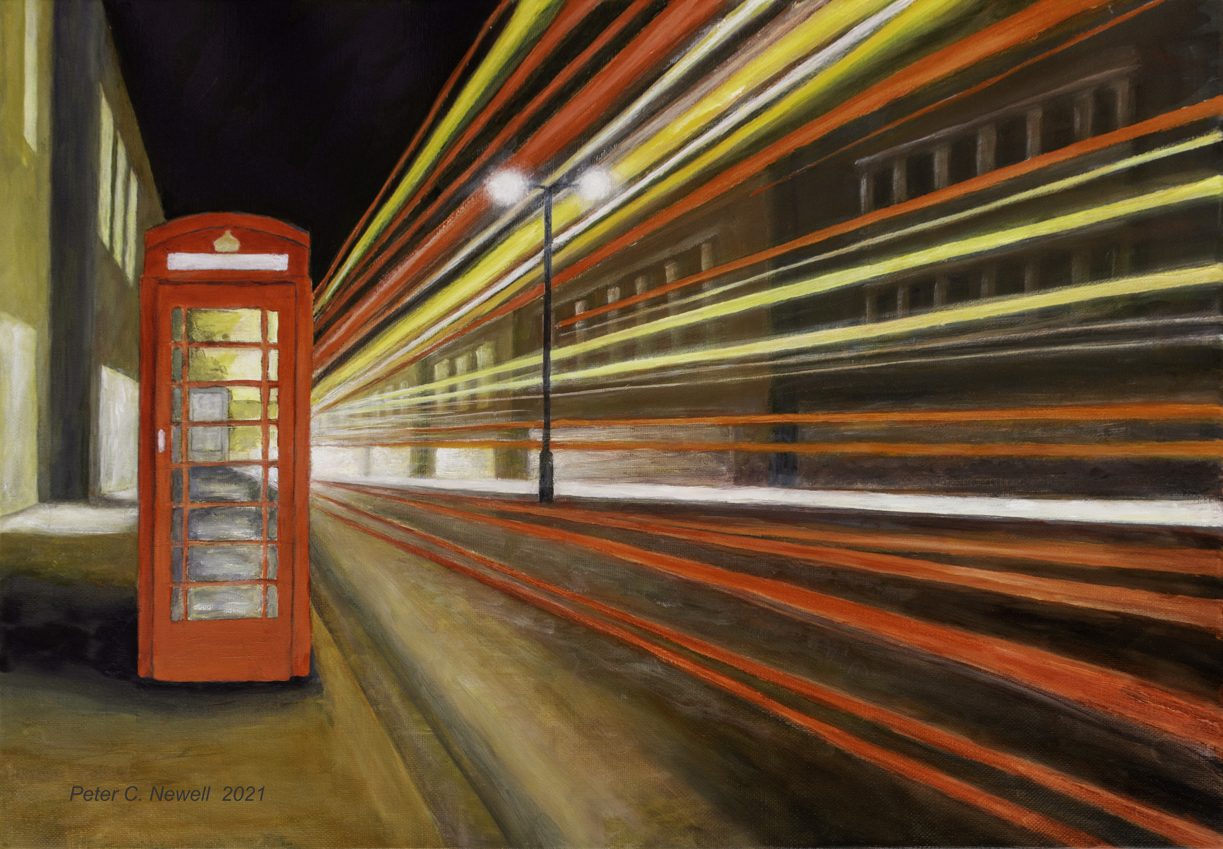 Light trails from buses and cars (based on a long exposure photo) (CMYK Oils) 2021