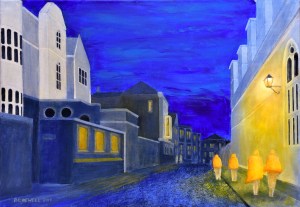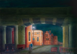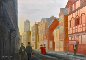 Northgate, Chester seen in daylight but imagined and painted as if by night