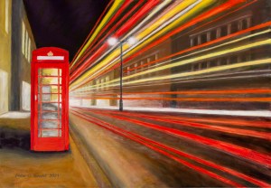 Light trails from buses and cars (based on a long exposure photo) (CMYK Oils) 2021