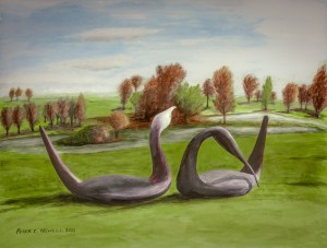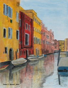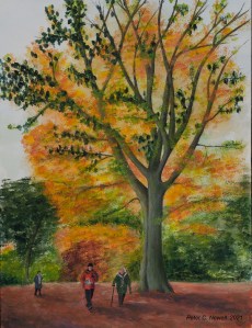 The Wesley Memorial Church in New Inn Hall Street is next to St Peter’s College. My undergraduate rooms in St Peter’s looked over to the Church roofs and the beautifully proportioned spire, which I first painted in 1962. It still holds my attention when I pass it today – particularly at night.