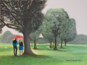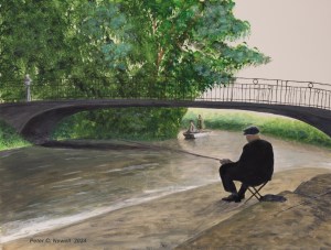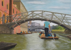 Punting in the Botanical Gardens in Christchurch, NZ in 2004 (Acrylics on A2 canvas)
