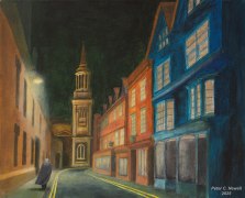 Evening walk in Turl Street Oxford, Acrylics on 40x50cm board (2025)